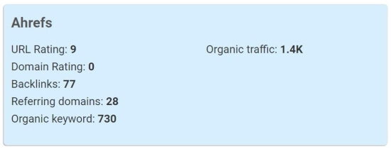 Anh em có thể thấy là site này theo ahref thì chỉ có tí tẹo link. DR thậm chí = 0, và traffic chỉ có tầm 1.3k.